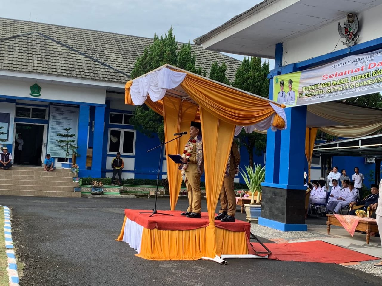 Pada hari pertama masuk kantor, Bupati Azhari didampingi Wakil Bupati Bambang Agus Supra Budi, S.Sos, M.Si, disambut oleh jajaran Aparatur Sipil Negara (ASN) Pemkab Lebong.
