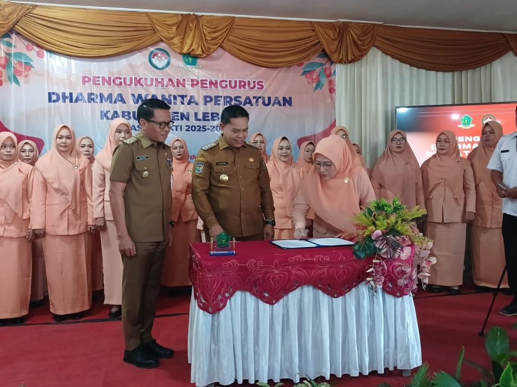 LEBONG, BEO07.CO.ID – Dibalik suksesnya pembangunan daerah, sering kali ada peran perempuan yang tak terlihat, namun sangat menentukan. Hal inilah yang menjadi sorotan dalam momen pengukuhan pengurus Dharma Wanita Persatuan (DWP) Kabupaten Lebong masa bakti 2025–2030 oleh Bupati Lebong, H. Azhari, S.H., M.H., pada Senin (21/07/25).
