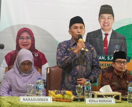 alam sambutannya Kepala Kantor Kementerian Agama Kota Sungai Penuh menyampaikan apresiasi yang tinggi terhadap terselenggaranya kegiatan workshop tersebut. Beliau menilai bahwa kegiatan ini sangat relevan dan strategis dalam upaya meningkatkan kualitas pendidikan, khususnya di lingkungan madrasah. Turut hadir dalam kegiatan ini, Kepala Bagian Tata Usaha, Bapak Muharum, S.Ag., M.Hi., serta Pengawas Madrasah, Bapak Drs. H. Supratman, M.Pd.