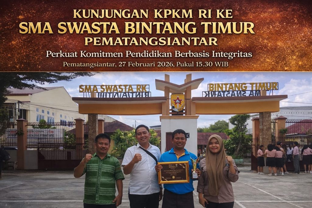 PEMATANG SIANTAR, BEO07.CO.ID – 27 Februari 2026 jajaran Kongres Pemberantasan Korupsi Manipulatif Rakyat Indonesia (KPKM RI) melakukan kunjungan resmi ke SMA Swasta Bintang Timur Pematangsiantar pada pukul 15.30 WIB sebagai tindak lanjut atas penghargaan Satuan Pendidikan Berbasis Integritas & Tata Kelola Bersih yang diraih sekolah tersebut pada ajang KPKM RI Award 2026 tingkat Cabdisdik Wilayah VI.