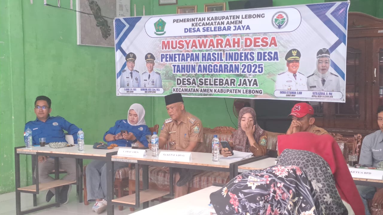 LEBONG, BEO07.CO.ID – Pemerintah Desa Selebar Jaya, Kecamatan Amen, Kabupaten Lebong, menggelar Musyawarah Desa dalam rangka penetapan hasil Indeks Desa (ID) tahun 2025, bertempat di Balai Desa Selebar Jaya.