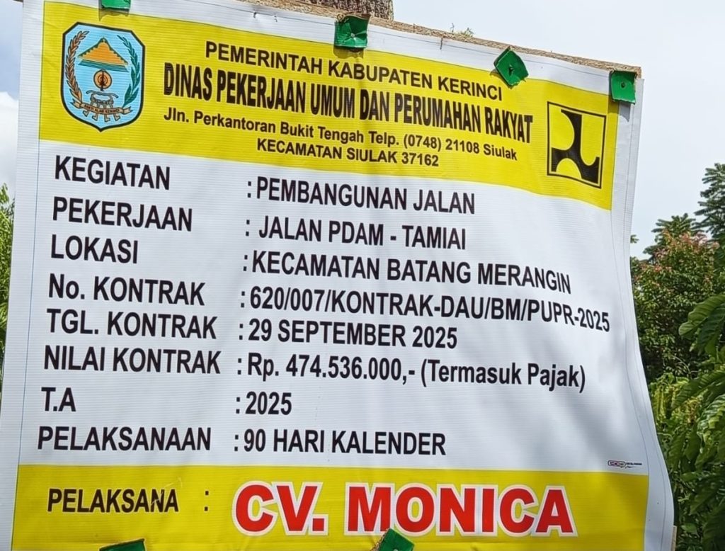 ​Papan informasi proyek mencatat bahwa pekerjaan ini dilaksanakan oleh CV. MONICA dengan nilai kontrak sebesar Rp 474.536.000,- yang bersumber dari APBD (DAU) Tahun Anggaran 2025. Dengan masa kerja 90 hari kalender sejak kontrak ditandatangani pada 29 September 2025, proyek ini seharusnya menjadi angin segar bagi konektivitas warga Batang Merangin.
