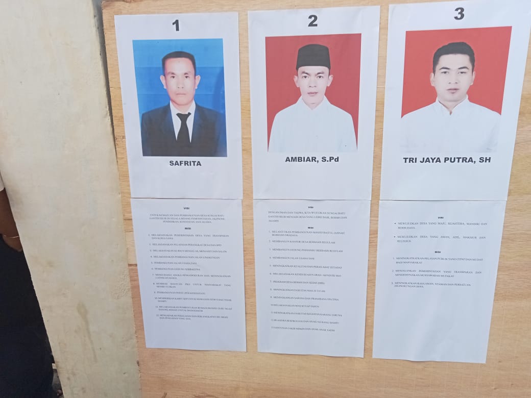 Dari hasil pantauan media ini lokasi nomor urut 01 saudara Saprita memperoleh suara 38 suara, pada nomor urut 02 saudara Ambiyar S.Pd memperoleh 35 suara, dan pada nomor urut 03 Putra Trijaya, SH memperoleh 19 suara.