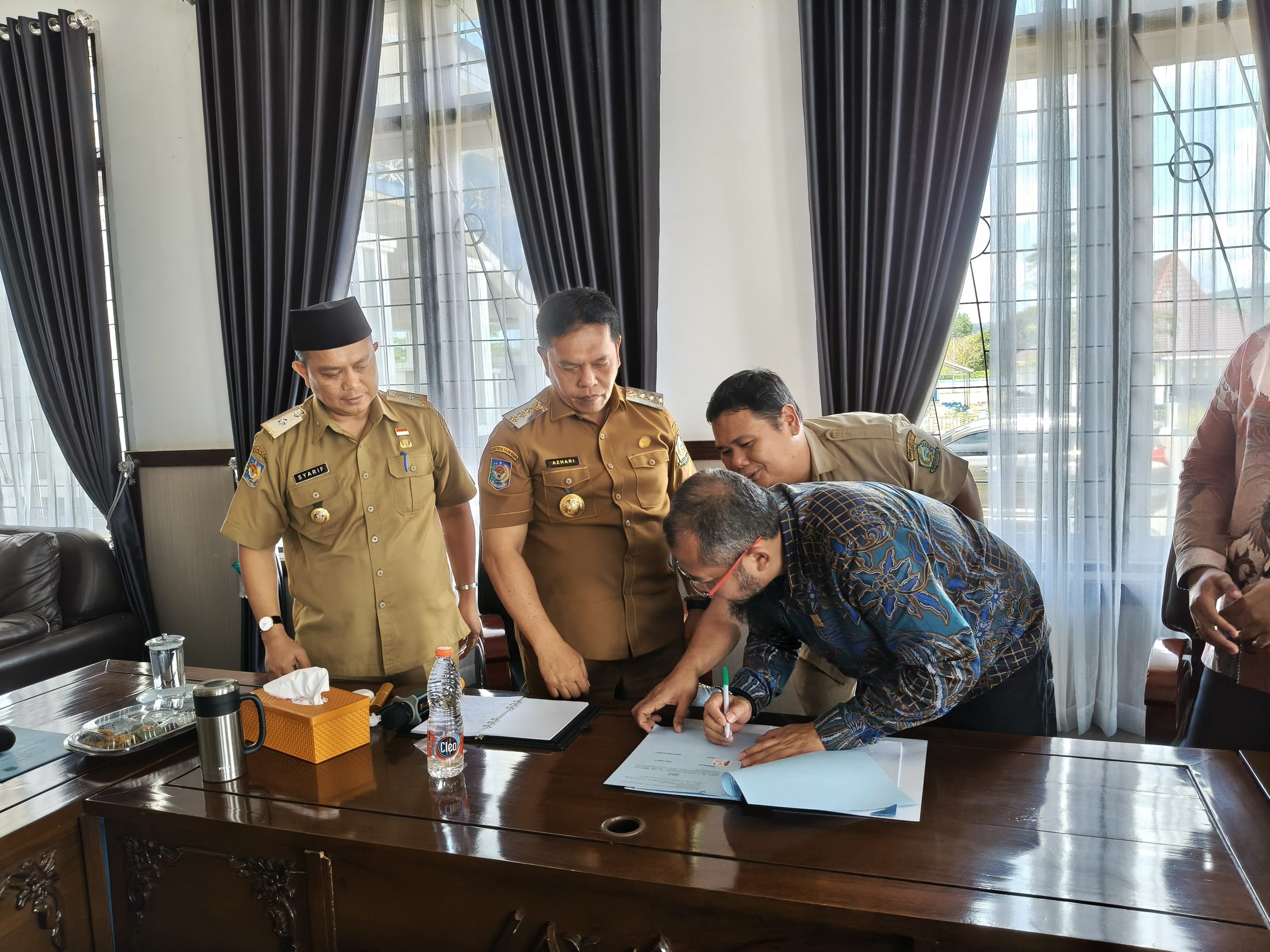 LEBONG,BEO07.CO.ID – Sebagai langkah strategis dalam kemitraan pengamanan penerimaan Pendapatan Asli Daerah (PAD), Pemkab Lebong melalui Bupati Azhari, SH, MH menandatangani perjanjian kerjasama (PKS) bersama Manager Area Lebong PT PLN (Persero) Bengkulu tentang sektor Penyetoran Pajak Barang dan Jasa Tertentu Tenaga Listrik (PBJT-TL) Penerangan Jalan Umum (PJU).