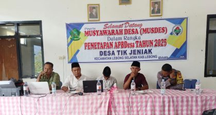 Bengkulu | Daerah | • Mei 23, 2025 • Desa Tik Jeniak Gelar Musdes APBDes 2025, “Mencerminkan Kebutuhan & Harapan Warga LEBONG, BEO07.CO.ID – Pemerintah Desa Tik Jeniak melaksanakan Musyawarah Desa (Musdes) dalam rangka penyusunan Anggaran...